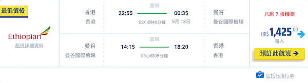 【曼谷】又有平!包46kg行李掃貨!埃塞俄比亞航空來回曼谷連稅$1,587起!2023年5月頭至7月尾出發