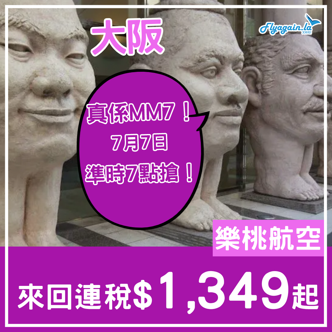 【大阪】真MM7!77小時限定優惠!7點開賣!樂桃航空推出大阪單程$470起!10月28日前出發