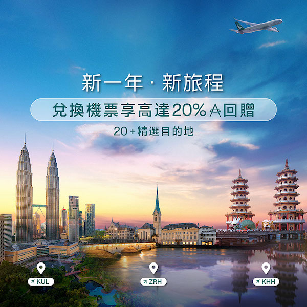 【國泰】超過20個航點適用!國泰限時里數兌換機票優惠,最多可享20%「亞洲萬里通」里數回贈!12月31日或之前換飛