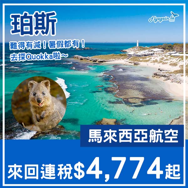 【珀斯】轉機抵玩飛!暑假都有!馬來西亞航空來回珀斯連稅$4,774起!5月至11月指定日子出發