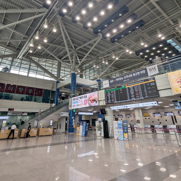 到達後,需自行走下樓梯,再走路前往客運大樓,距離並不遠。由於清州是小機場,出入境及拿行李都十分快速。機場內就有餐廳、ATM、買 SIM 卡的店等,尚算齊全~